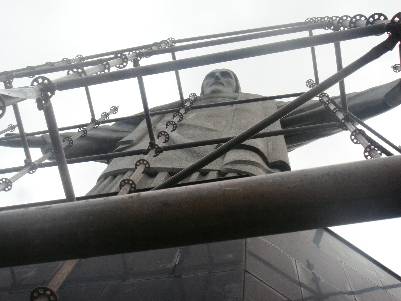 Era praticamente impossível conseguir bater uma foto decente com o cristo ao fundo. Por dois motivos: 1) a quantidade de gente transitando ali em cima, então SEMPRE saía um papagaiaço na foto; 2) o início da reforma, que deixou duzentos mil andaimes na parte de baixo dele (nas “pernas”). Então o ângulo da estátua acabava sendo pequeno pra tirar a foto.